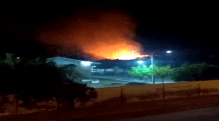 Um incêndio atingiu um terreno que fica ao lado da Escola José Gomes Alves, no bairro Jatobá, em Patos, na noite deste domingo, 29, por volta das 22h3omin.