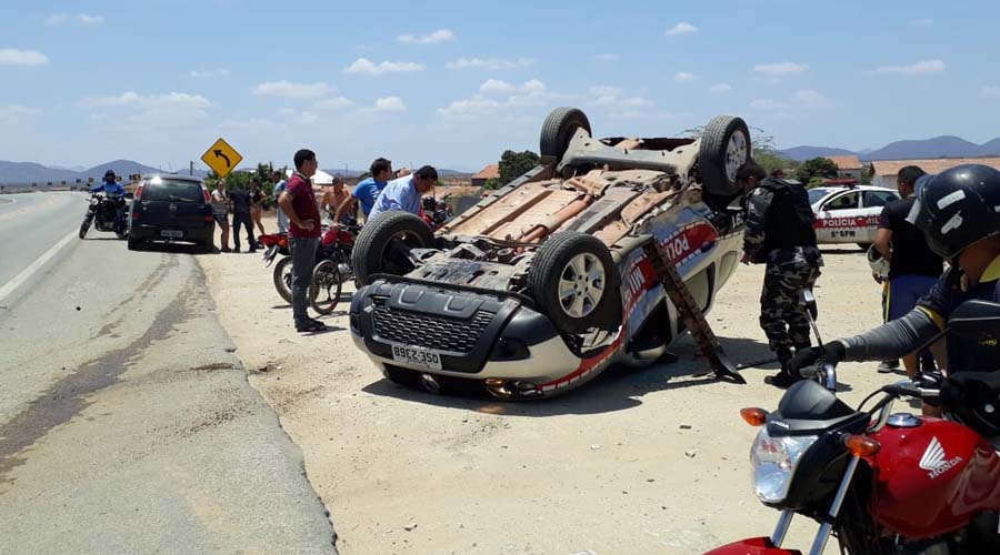 O acidente foi grave e, segundo as informações, duas pessoas foram levadas para o Hospital de Patos e um policial está preso às ferragens.
