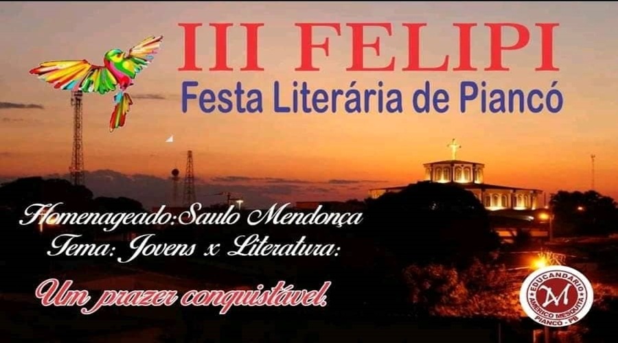 Dias 02 e 03 de dezembro, o Educandário Américo Mesquita, em Piancó, na Região Metropolitana do Vale do Piancó, realizará a III FELIPI – Festa Literária de Piancó, com o tema “Jovens x Literatura: um prazer conquistável”, homenageando Saulo Mendonça Marques.