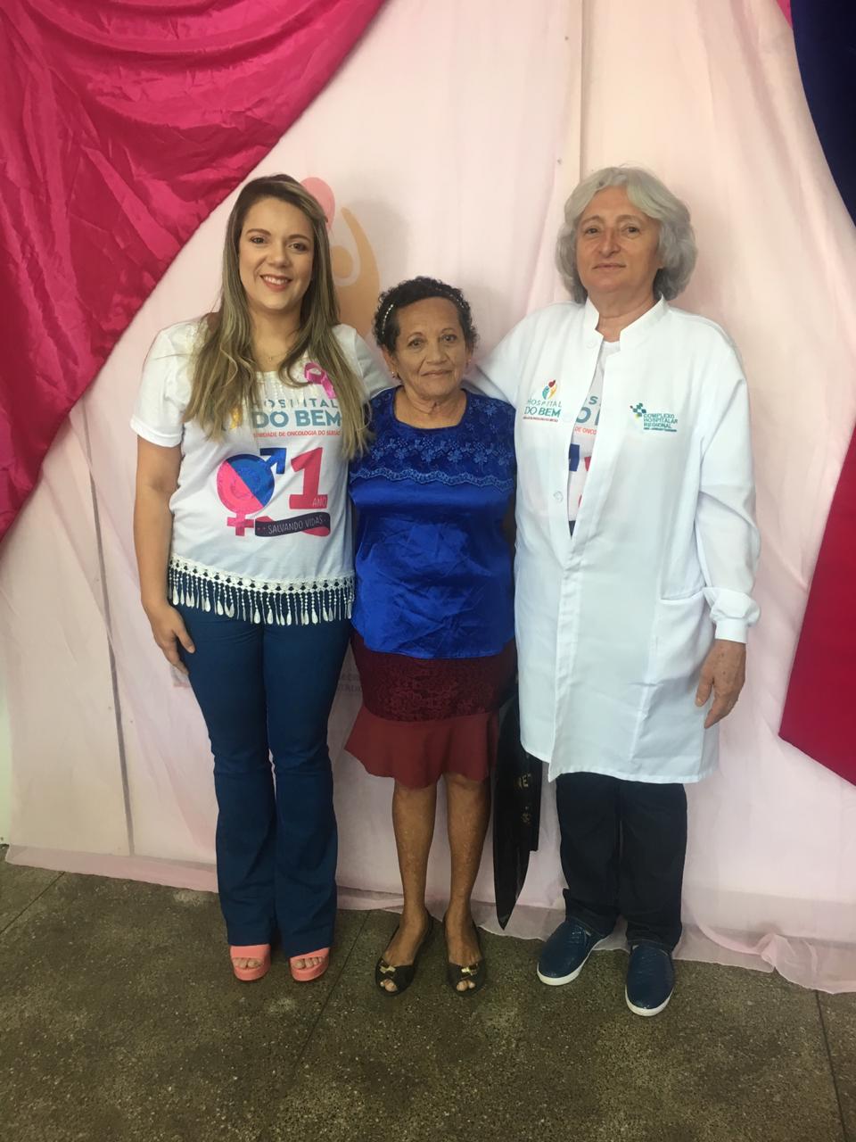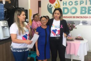 A aposentada Marli Alves da Silva, de 68 anos, de São Mamede, inaugurou os serviços cirúrgicos do Hospital do Bem, em setembro do ano passado, com a retirada de um tumor no endométrio. Ela também foi a primeira paciente a ser internada na unidade. Depois, fez sessões de quimioterapia no Hospital e outras sessões de radioterapia em João Pessoa. Ela também comemorou a cura da doença e disse que a facilidade de tratamento perto de casa e o carinho da equipe do Hospital do Bem foram fundamentais para ela. “Da recepção aos médicos, tudo aqui funciona muito bem, não há o que falar. Tive tudo o que precisei na área médica e mais ainda. Todos aqui nos recebem com sorrisos e nos enchem de esperança. E não foi só comigo. Isso são com todos os pacientes”, afirmou Marli, que aproveitou a comemoração de um ano e fez uma maquiagem com uma das profissionais que, voluntariamente, hoje, por causa de uma ação do Outubro Rosa, estavam à disposição das pacientes da unidade para deixa-las ainda mais belas.