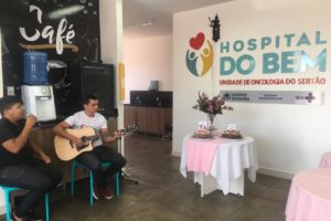 Boa parte da comemoração hoje pela manhã, foi acompanhada de voz e violão, com o coordenador administrativo do Hospital do Bem, Thiago Viana, que se revezou entre vocal e violão, com o cantor Yago Marinho. No final, todos participaram de um lanche coletivo, com direito a bolos comemorativos em função do primeiro aniversário de funcionamento do Hospital do Bem.
