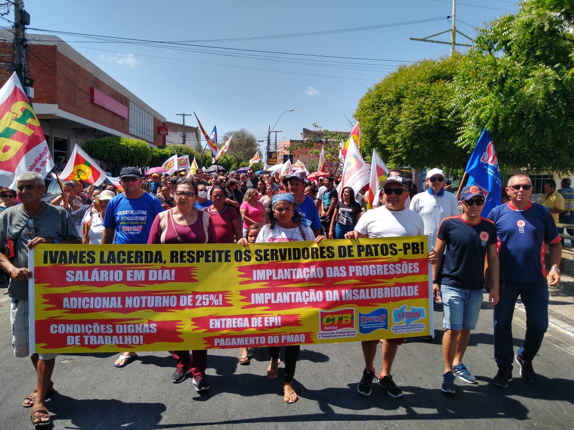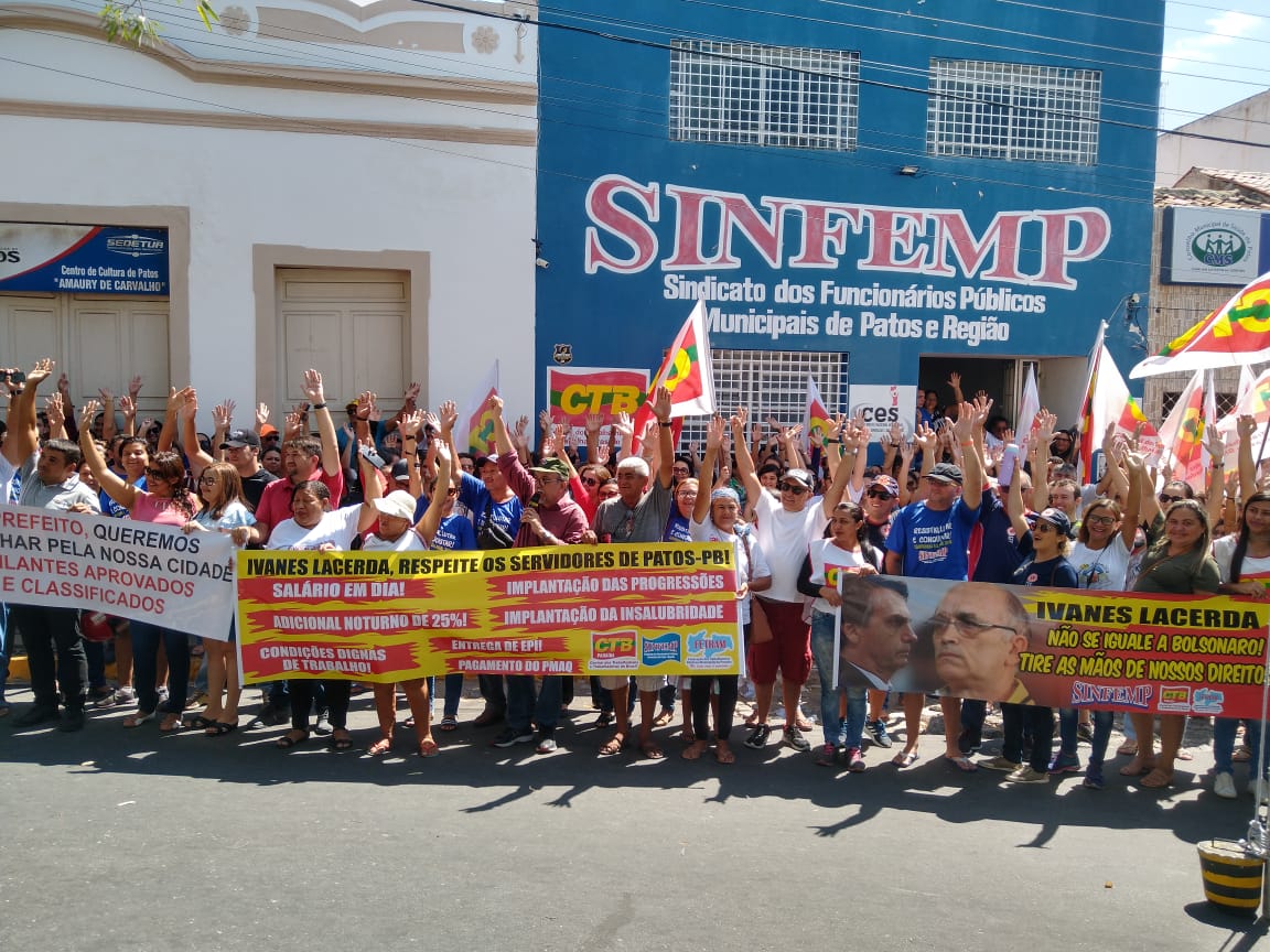 Centenas de servidores públicos municipais de Patos, convocados pelo SINFEMP – Sindicato dos Funcionários Públicos Municipais de Patos e Região, paralisaram suas atividades no dia de hoje, conforme deliberação de assembleia realizada no último dia 4 de outubro de 2019.