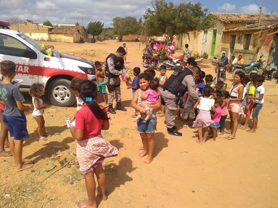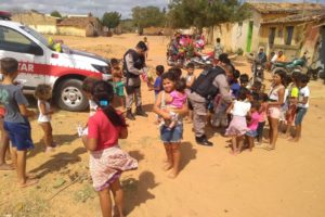 Na manhã de ontem (sexta-feira, 11) foram distribuídos brinquedos e guloseimas nas comunidades da Serra Feia em Cacimbas, Aparecida de Desterro e no bairro das Malvinas em Teixeira.