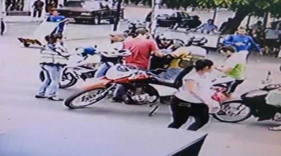 Imagens de segurança flagraram o momento em que Raimundo estava parado no semáforo, o mesmo já aparentava está tonto, assim que o semáforo abre, ele tomba por cima do mototaxista que de imediato pede ajuda de outros que passavam no local.