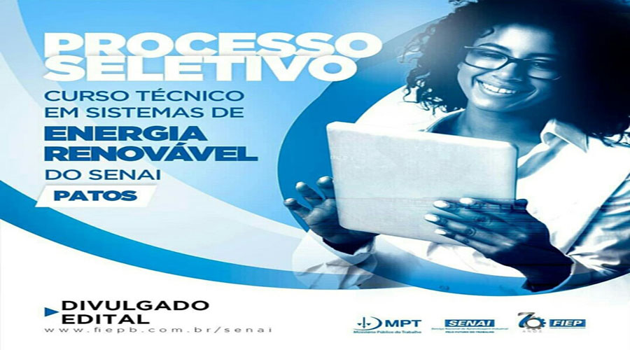 Os interessados em participar do Curso Técnico em Sistemas de Energias Renováveis, que será realizado pelo SENAI e Ministério Público do Trabalho, na cidade de Patos, terão até a próxima segunda-feira, 21/10 para fazer a inscrição.