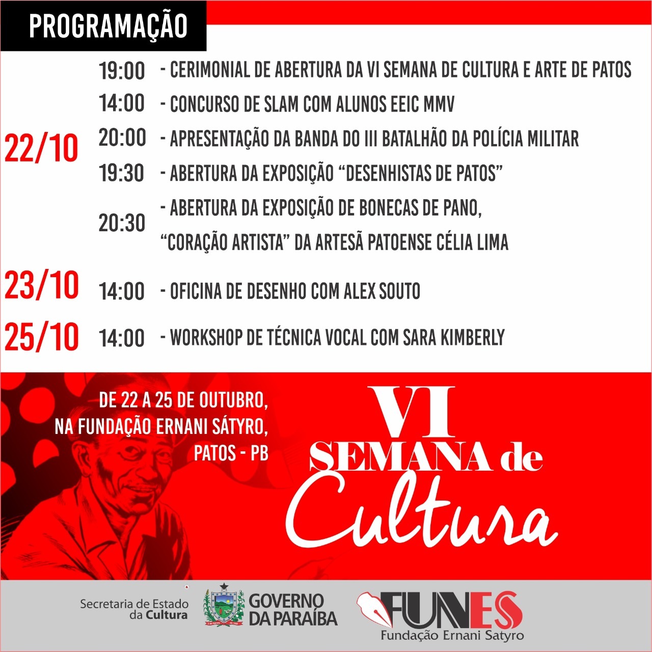 PROGRAMAÇÃO DA VI SEMANA DE CULTURA E ARTE DE PATOS