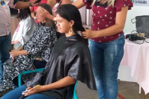 A ação de oito cabeleireiros voluntários e a disposição de algumas mulheres em ajudar ao próximo, transformaram a recepção do Hospital do Bem, em Patos, na manhã desta segunda-feira (21), num espaço solidário, onde cabeleireiros se revezavam no corte de cabelos e doadoras se dispunham a abrir mão de parte das madeixas em prol de uma ação que envolveu amor, solidariedade e compaixão. O Dia da Doação de Cabelo, uma das ações do Outubro Rosa da unidade e também das comemorações de um ano de atividades do Hospital, é uma data que ficará marcada para todos os envolvidos nesta atividade e mais ainda para quem será beneficiada por uma das perucas que será confeccionada com os cabelos doados hoje. Além do corte de cabelos, alunos do curso de Estética, do colégio Santo Expedito, se uniram à ação e fizeram maquiagem, massagem e sobrancelhas das doadoras, abrilhantando, ainda mais, aquele momento.