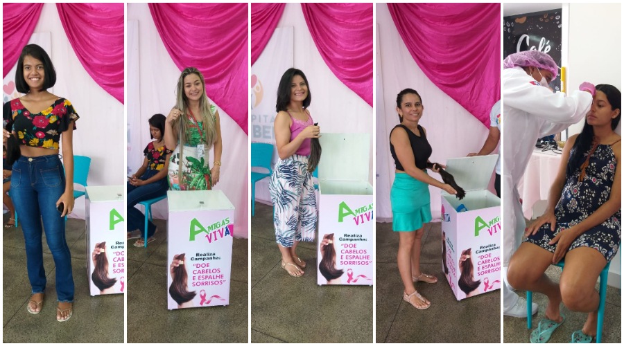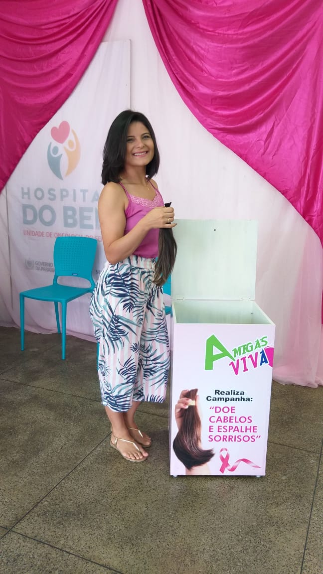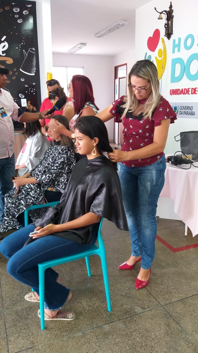 A ação de oito cabeleireiros voluntários e a disposição de algumas mulheres em ajudar ao próximo, transformaram a recepção do Hospital do Bem, em Patos, na manhã desta segunda-feira (21), num espaço solidário, onde cabeleireiros se revezavam no corte de cabelos e doadoras se dispunham a abrir mão de parte das madeixas em prol de uma ação que envolveu amor, solidariedade e compaixão. O Dia da Doação de Cabelo, uma das ações do Outubro Rosa da unidade e também das comemorações de um ano de atividades do Hospital, é uma data que ficará marcada para todos os envolvidos nesta atividade e mais ainda para quem será beneficiada por uma das perucas que será confeccionada com os cabelos doados hoje. Além do corte de cabelos, alunos do curso de Estética, do colégio Santo Expedito, se uniram à ação e fizeram maquiagem, massagem e sobrancelhas das doadoras, abrilhantando, ainda mais, aquele momento.