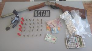 Ao ser realizada uma inspeção por cima do muro, avistaram uma espécie de escopeta e também um outro indivíduo, conhecido por Felipe (F. N. F.), que já teria sido preso outras vezes por tráfico de drogas.