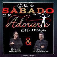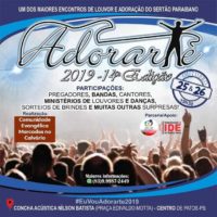 A 14ª edição do evento evangélico Adorarte acontece nos dias 25 e 26 de outubro (sexta-feira e sábado), às 19h30min, na Concha Acústica, no centro de Patos.