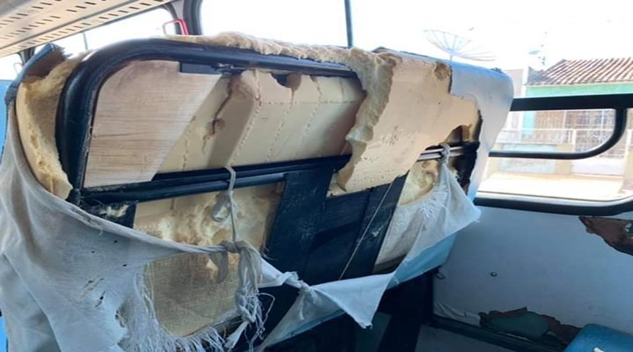 Bancos com as espumas aparecendo ou esburacadas, capas cortadas e estrutura dos veículos foram danificadas. Cerca de 90% do ônibus escolar que faz a rota do Assentamento de Poços para a cidade de Teixeira apresenta avarias intencionalmente praticadas por alguns dos alunos.