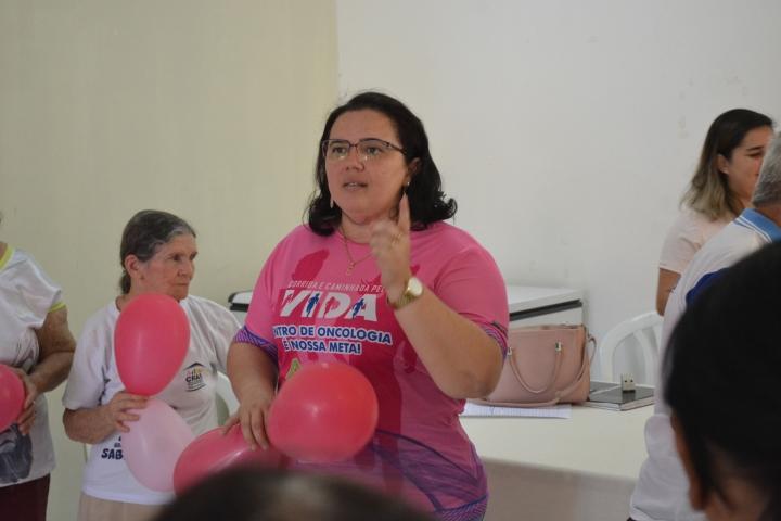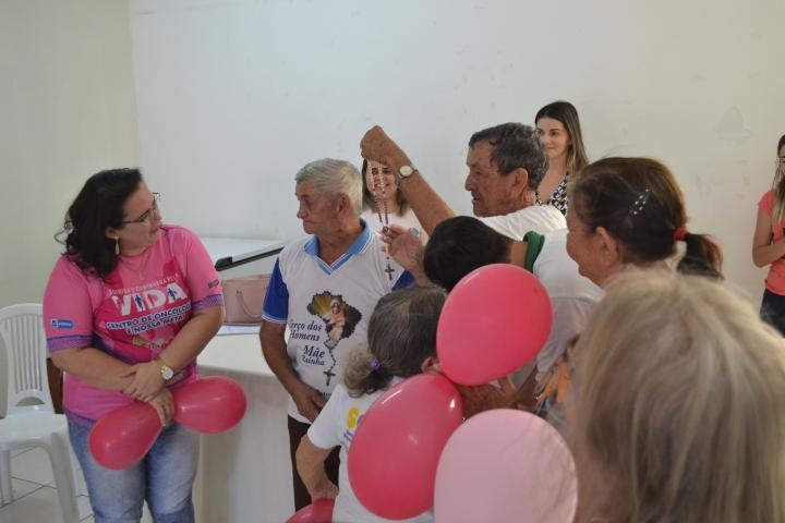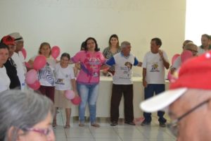 No Cras, o tema “Câncer de Mama na Terceira Idade” foi discutido de forma lúdica para facilitar a interação dos idosos do grupo Saber Viver. De modo que as equipes do Nasf e da UBS III falavam sobre os cuidados com as mamas nessa faixa etária.