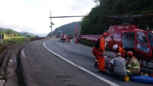 Helicópteros do Corpo de Bombeiros e ambulâncias da Concer foram usados para resgatar as vítimas, que foram levadas para os hospitais Moacyr Rodrigues do Carmo e Adão Pereira Nunes, ambos em Duque de Caxias.