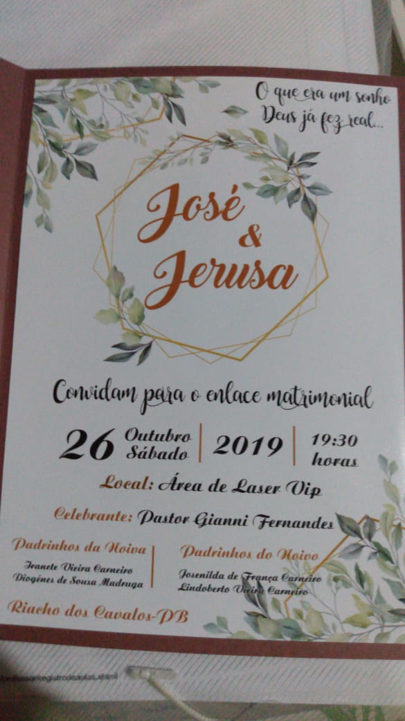 Na noite deste sábado, 26/10, realizado na cidade de Riacho dos Cavalos o casamento de Jerusa e José.