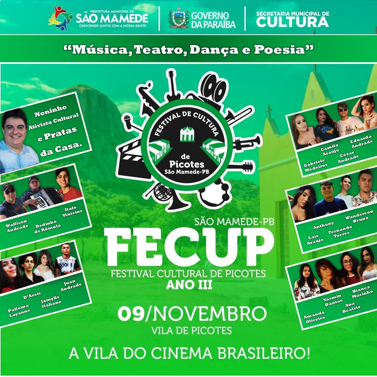 A programação dos shows culturais do festival começa a partir das 22h, com Cicinho Lima e a participação especial de seu pai, Pinto. Depois, o grupo As Meninas sobe ao palco e, para fechar o festival, a cantora Cyda Dias.