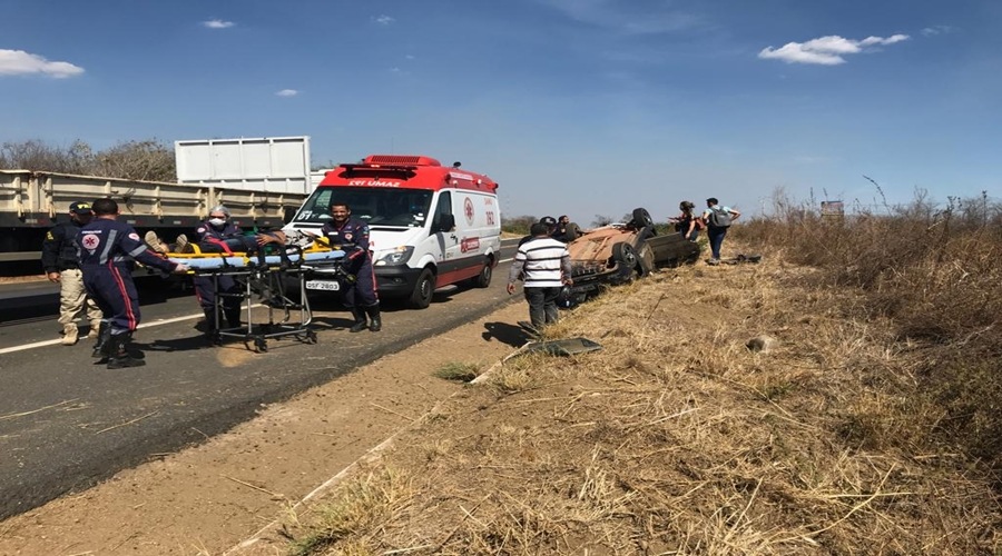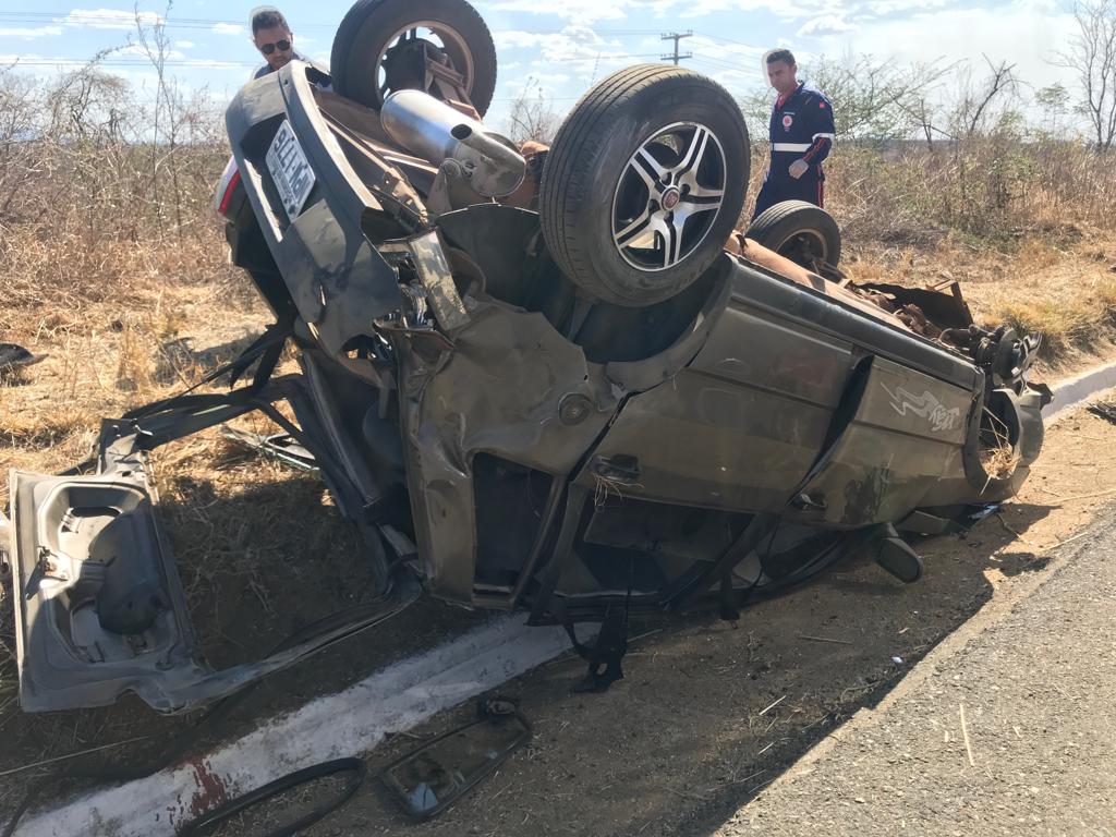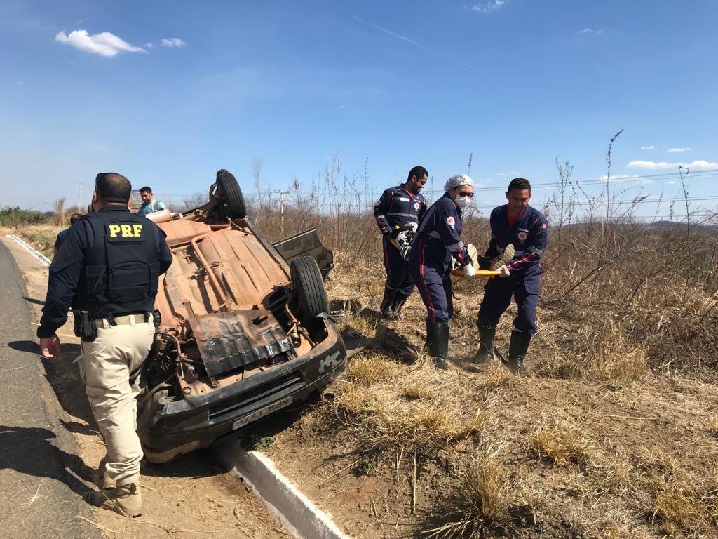 No início da tarde desta quinta-feira, 31, um carro com placas de Cachoeira dos Índios capotou na BR-230, próximo do Posto da PRF em Cajazeiras.