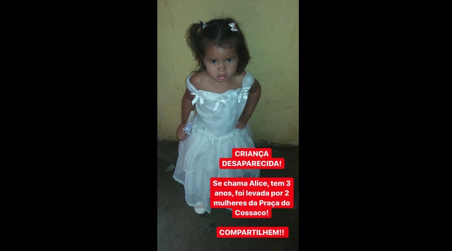 Maria Alicia de 04 anos de idade, foi raptada na tarde desta quinta-feira (31), na cidade de Piancó. Segundo uma prima da criança, o fato ocorreu por volta das 14 horas.