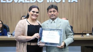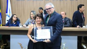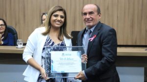Outro homenageado da noite foi o Centro Universitário de Patos-UNIFIP, e quem esteve representando o reitor João Leuson, foi sua irmã, Silvania Palmeira Gomes, que agradeceu à Câmara pela homenagem e destacou o trabalho da UNIFIP na formação de profissionais fisioterapeutas.