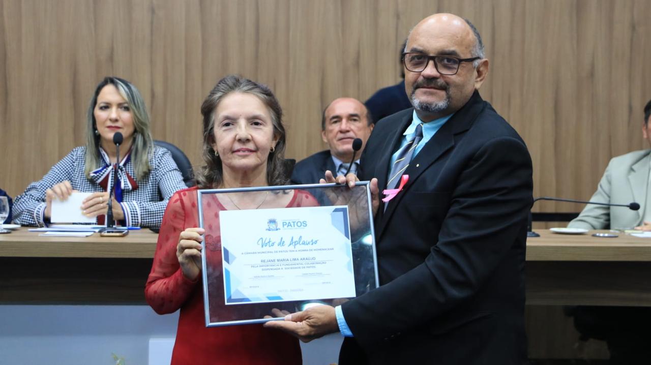 Durante a Sessão, diversos fisioterapeutas e pessoas que contribuem para o crescimento da fisioterapia em Patos foram homenageadas através da entrega de “Voto de Aplausos”. As primeiras fisioterapeutas a atuarem na cidade de Patos, Rejane Maria e Francisca Maracajá falaram da alegria de serem homenageadas pela Câmara de Vereadores.