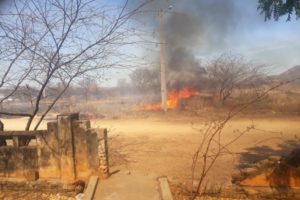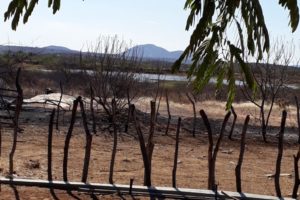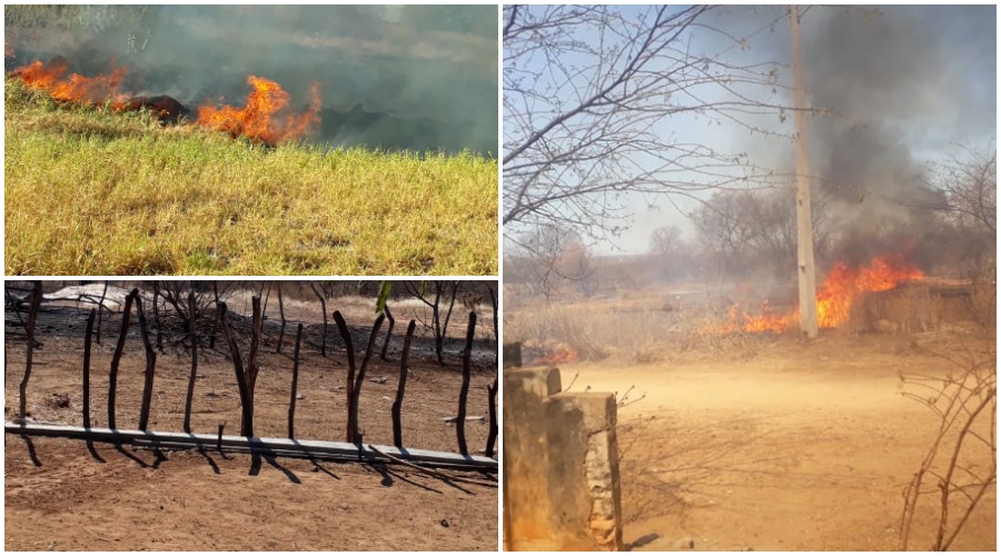 O incêndio no Assentamento Patativa do Assaré, no Distrito de Santa Gertrudes, em Patos, vem devastando toda a mata, afugentando animais, como também prejudicando as residências dos agricultores e agricultoras que moram no local.