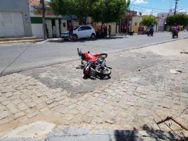 Um veículo modelo Celta e uma moto Pop colidiram deixando uma mulher ferida. Ela foi socorrida por uma equipe do SAMU e levada para o Complexo Hospitalar Regional de Patos, apresentando alguns ferimentos.
