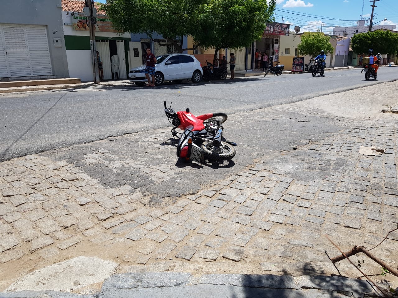 Um veículo modelo Celta e uma moto Pop colidiram deixando uma mulher ferida. Ela foi socorrida por uma equipe do SAMU e levada para o Complexo Hospitalar Regional de Patos, apresentando alguns ferimentos.
