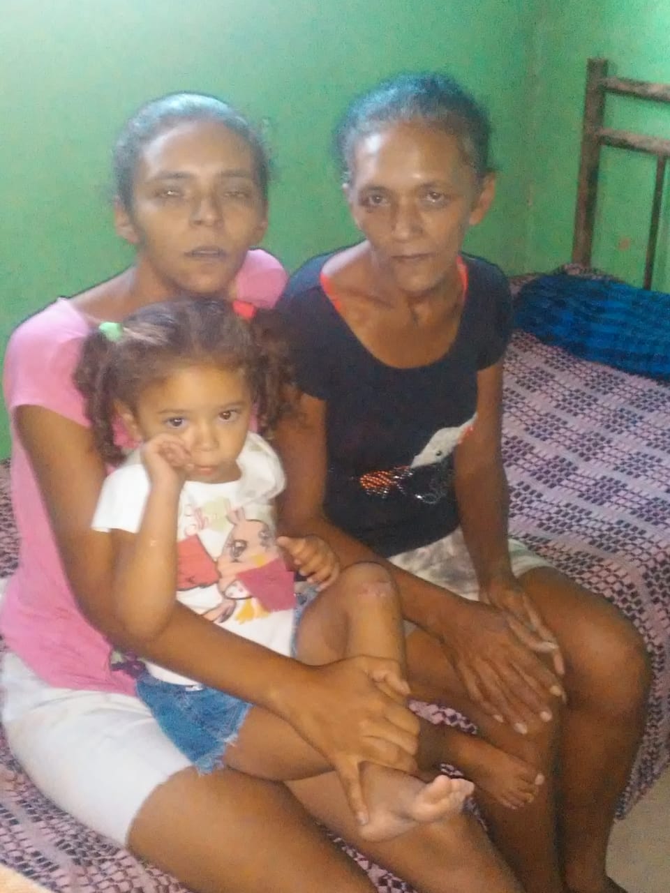 A filha de Maria do Socorro, a pequena Pietra Francisco da Silva, de apenas 03 anos, se encontra com germe de gato, enquanto a avó da criança, a dona de casa Damiana Francisco da Silva, de 47 anos, sofre de depressão. “Eu estou em Sertânia atualmente porque conheci um homem. Minha mãe e minha filha Pietra vieram para cá no último sábado, pois as duas estão doentes. Meus outros três filhos menores ficaram com familiares na Paraíba, sendo dois em Mãe d’Água e outro em Maturéia”, disse. Eles já tentaram conseguir pessoas que ajudassem em Sertânia, porém não obtiveram êxito. “Já tentamos resolver a nossa situação por aqui, mas está difícil”.