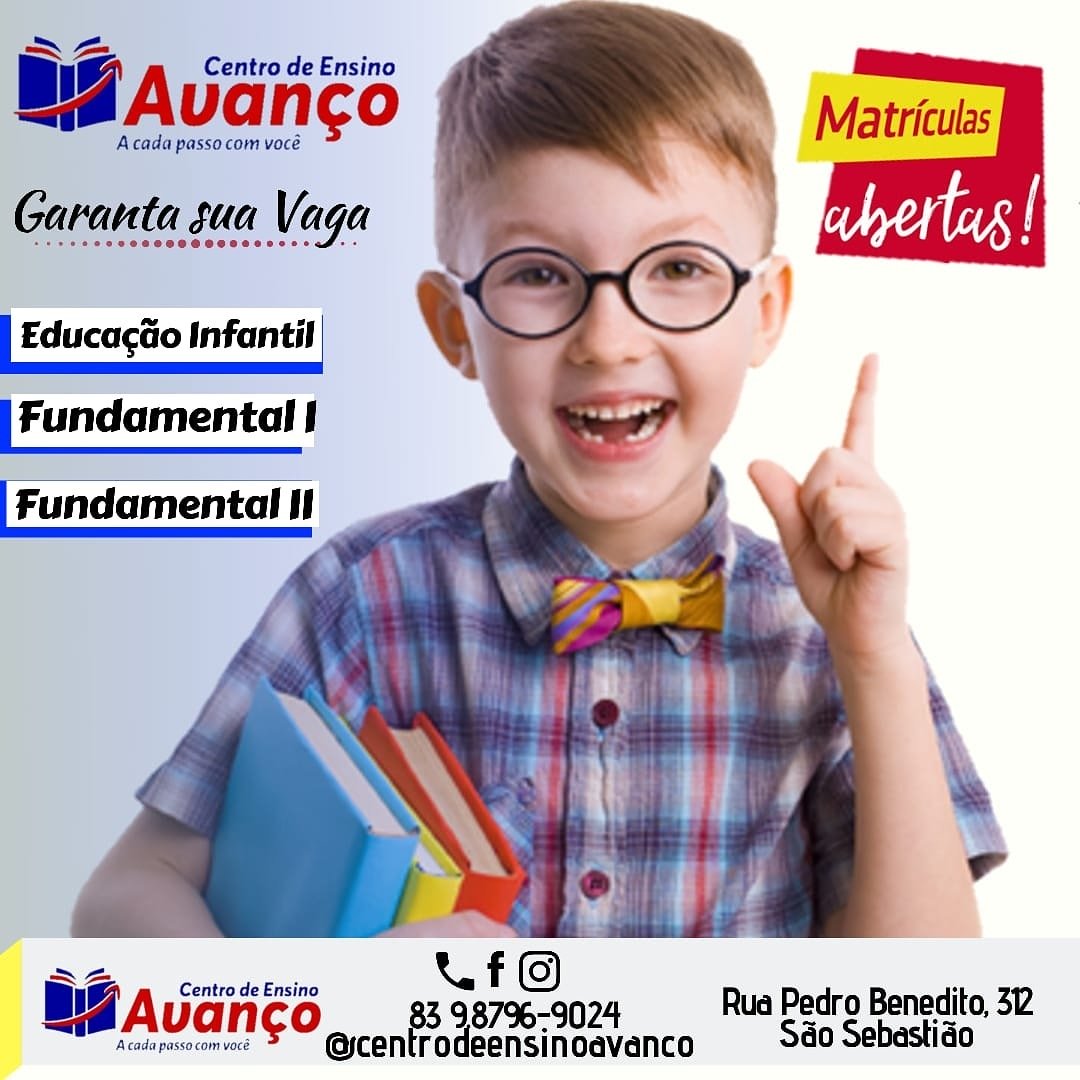 O Centro de Ensino Avanço, localizado na Rua Pedro Benedito, 312, no São Sebastião, surge como uma grande novidade na educação de Patos, e as matrículas já estão abertas para 2020.