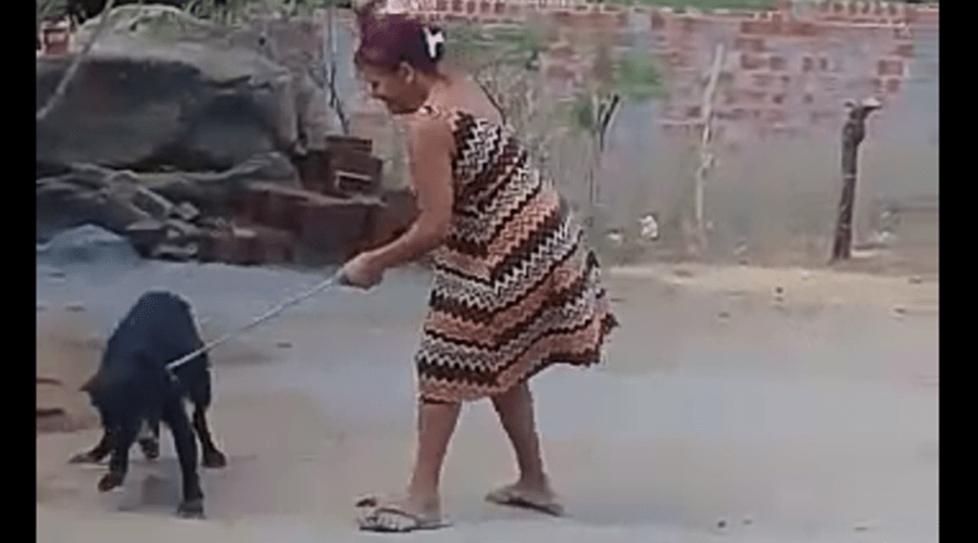 De acordo com informações de populares, quando os vizinhos chegaram, ela já estava preparando o fogo para queimar o animal.