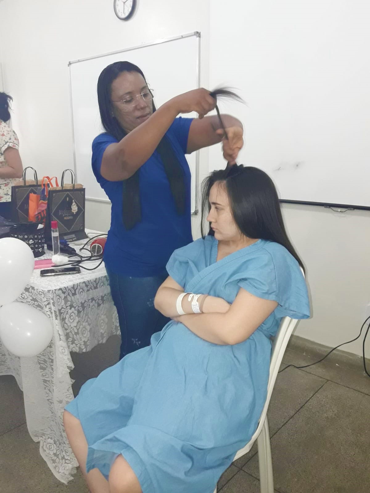 As mães de recém-nascidos prematuros que acompanham seus bebês que ainda estão sob os cuidados da UTI Neo, UCIN ou do alojamento Mãe Canguru da Maternidade Dr. Peregrino Filho, de Patos, viveram momentos bem diferentes da rotina que estão acostumadas na unidade, nesta terça-feira (19). Graças as comemorações do Dia Internacional da Sensibilização para a Prematuridade, as mães tiveram uma tarde com diversas atividades, que incluiu cortes de cabelo, escova, sobrancelha e depilação. A ação foi encerrada com um coffee break, idealizado especialmente para elas. Todos os serviços foram realizados por funcionárias voluntárias que no contra turno de trabalho se dispuseram a tornar a tarde destas mães mais alegre.
