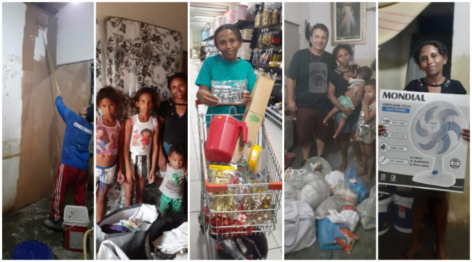 Um dos desejos da vizinha era fazer uma pequena reforma na casa da viúva Marlene. A residência está bastante deteriorada e, com as doações, os serviços de pintura começaram. “Ainda falta cimento, janela, porta, pia etc, mas conforme a gente vai recebendo as doações, vamos realizando os serviços”, disse Camila.