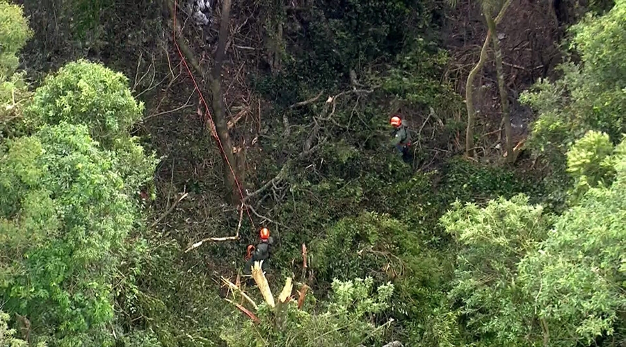 Oito equipes do Corpo de Bombeiros foram enviadas ao local. O local é de mata fechada e de difícil acesso. Por isso, os socorristas tiveram que usar um helicóptero para chegar ao local e descer com o auxílio de cordas.