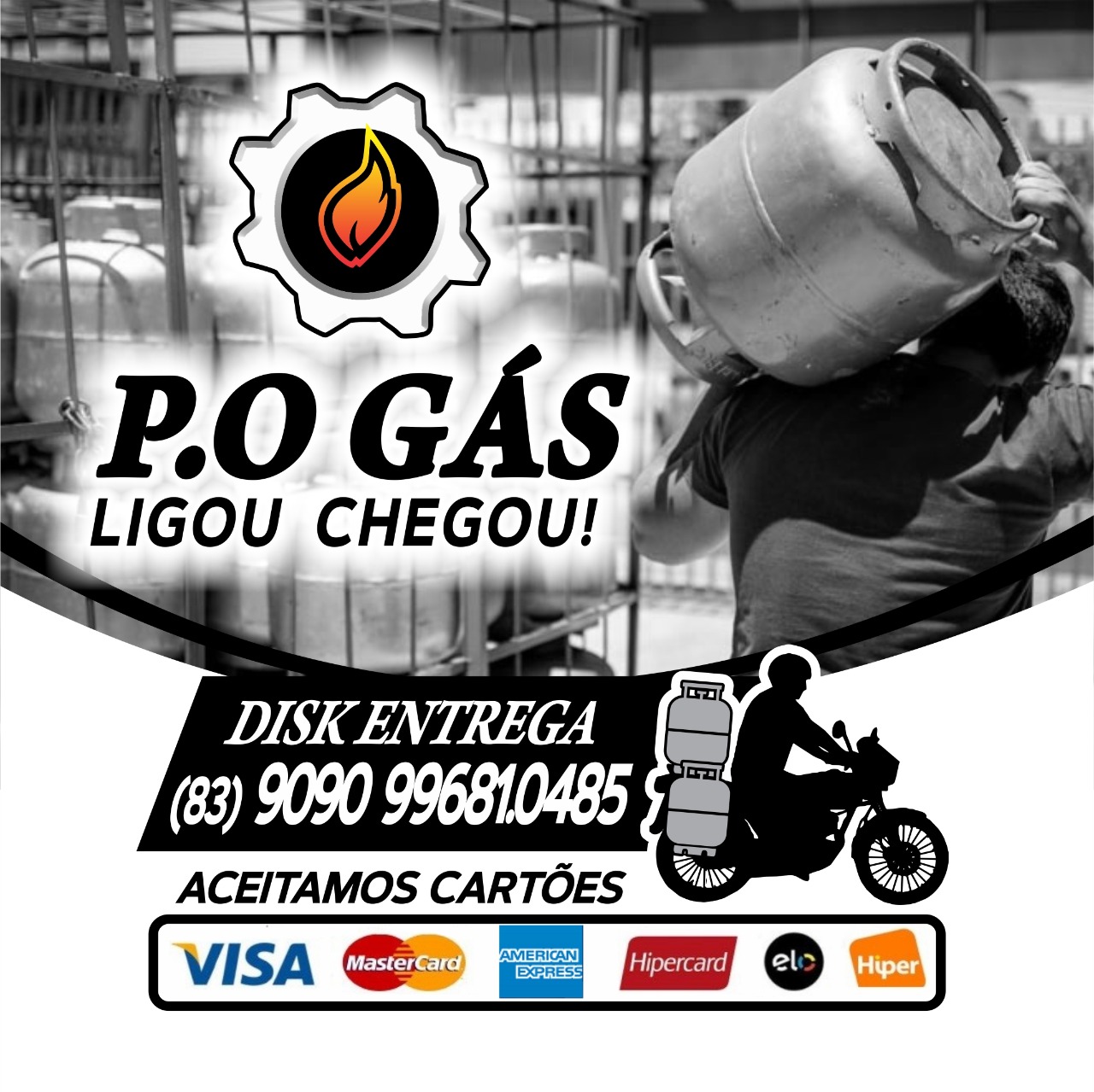 A empresa P.O Gás, localizada no Jatobá, em Patos, vende botijão a R$ 63,00 e faz entrega a domicílio em toda a cidade.