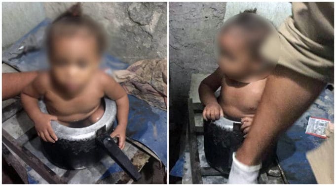 Uma criança de 1 ano e 9 meses de idade ficou presa dentro de uma panela de pressão e foi resgatada pelo Corpo de Bombeiros. O caso aconteceu em Goiana, na Região Metropolitana do Recife, na noite da sexta-feira (6) e foi divulgado pela corporação na manhã deste sábado (7).