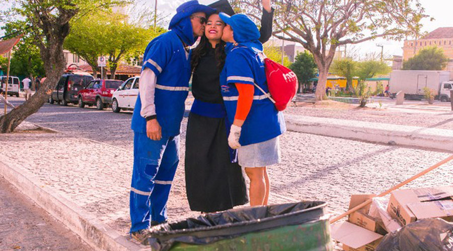 Moisés trabalha como gari há mais de 20 anos e Iracilda há algumas semanas. Vanessa conta que, devido ao amor entre o casal, eles só trabalham lado a lado. “Quando eu fazia o fundamental, meus colegas de turma me chamavam de filha do lixeiro. Me sentia mais forte ainda. Nunca fiquei triste por estarem falando assim comigo. O erro não estava em mim, e sim neles”, relata.