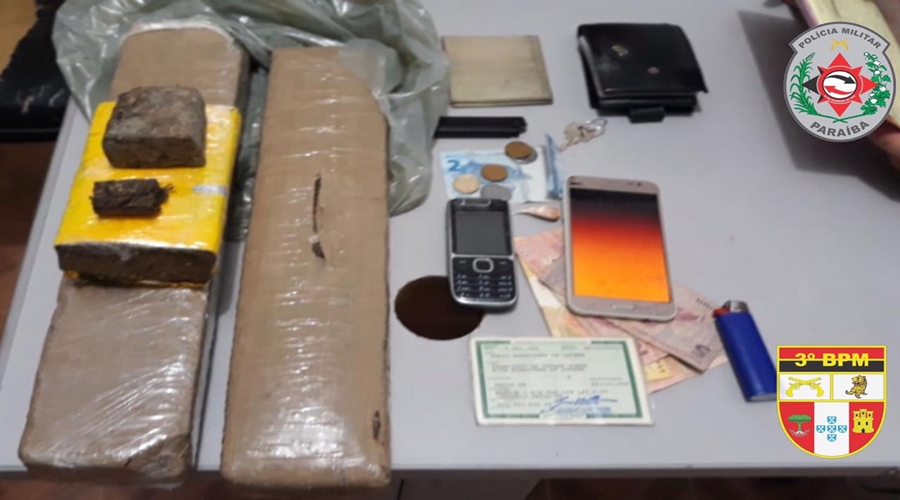 A prisão ocorreu na rua Joaquim Lopes, no Bairro Morro, em Patos, e estavam com os indivíduos, J. R. De L. e M. L. F., os seguintes materiais: