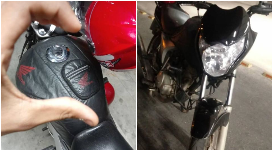 A moto é uma Honda Titan, 150, preta, ano 2010, placa NQC 9195 – Patos.