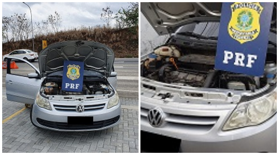 Os policiais conseguiram realizar a abordagem, quando constataram que o veículo era roubado. No interior do automóvel haviam três homens, sendo o condutor menor de idade e um dos homens com Mandado de Prisão em aberto por porte ilegal de arma de fogo. O outro passageiro do automóvel estava com tornozeleira eletrônica e aparece em imagens de circuito interno de uma loja praticando um assalto no início deste ano.