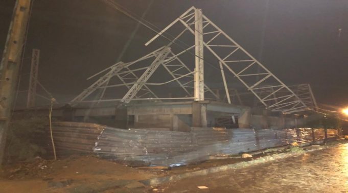 O fato é que, segundo o engenheiro da Secretaria, Marcus Vinícius, foram colocadas três treliças da coberta metálica do CIE, e posteriormente seria executado o contraventamento (barra oblíqua com os braços dispostos obliquamente, fixada entre dois prumos, montantes etc. de uma estrutura, para tornar mais sólido o conjunto). Esse contraventamento estava programado para ser iniciado amanhã, porém, os ventos que ocorreram nesta quarta levaram a estrutura a tombar, a mesma será desmontada, recuperada e reinstalada.