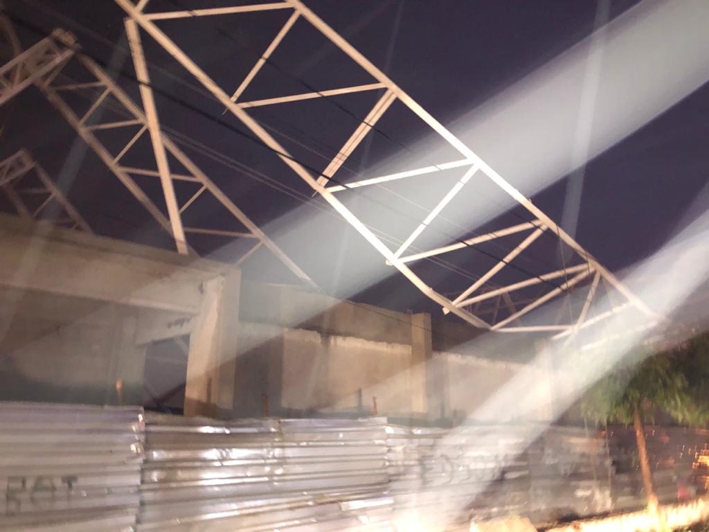 Marcus informou que a estrutura metálica não chegou a desabar, tombou, envergou e ficou segura pelos pilares. Informa que a empresa responsável pela obra estará amanhã realizando os serviço de desmonte e recuperação e que o ocorrido não trará prejuízo ao município.