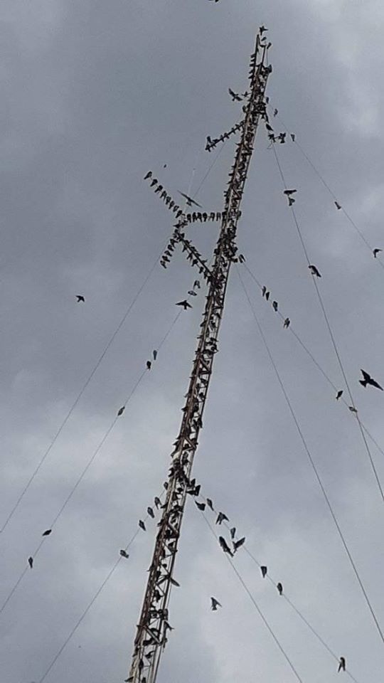 Uma cena impressionante e muito bonita de se ver foi registrada na última terça-feira, 20, na torre da Rádio Água Branca FM, no centro da cidade. O registro foi feito por Valter Firmino, que fotografou centenas de aves da espécie andorinha que frequentavam o local.