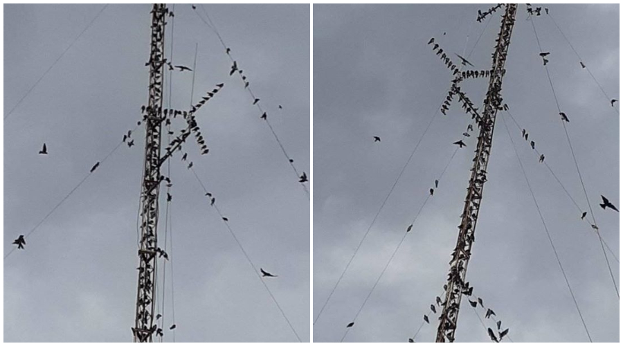 Uma cena impressionante e muito bonita de se ver foi registrada na última terça-feira, 20, na torre da Rádio Água Branca FM, no centro da cidade. O registro foi feito por Valter Firmino, que fotografou centenas de aves da espécie andorinha que frequentavam o local.