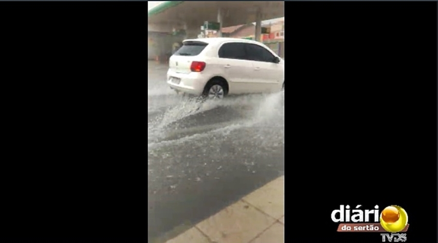 Segundo moradores, a chuva forte durou pouco tempo, mas foi suficiente para alagar várias ruas da cidade.