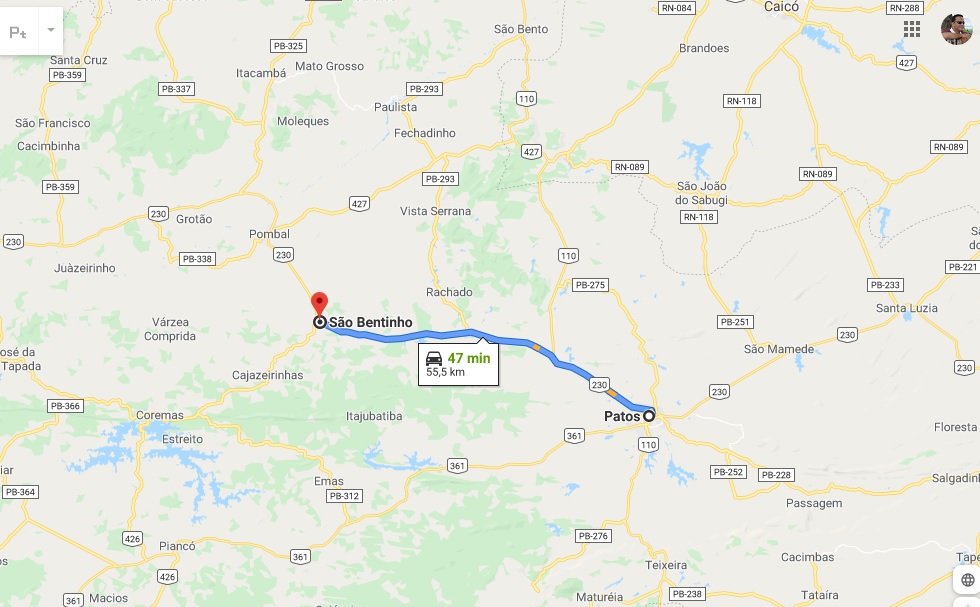 Com o objetivo de andar cerca de 300 quilômetros até a estátua de Padre Cícero, Damião foi visto nesta terça-feira (21), na cidade de São Bentinho, a 55,5 km de Patos, local de partida.
