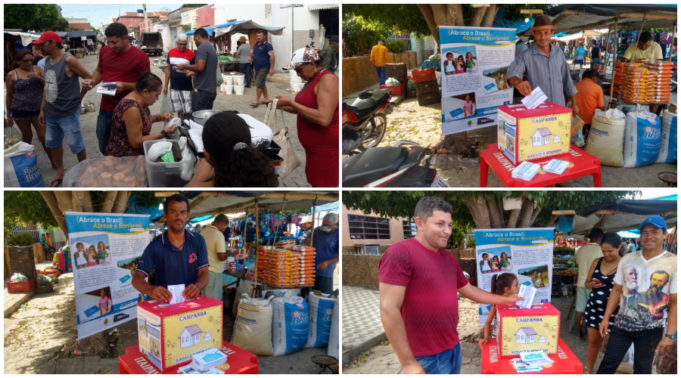 Participaram da atividade Joilton, Edilson, Aldair, Rafaela e Bruno, ambos da cidade de Cacimbas, que estiveram com a caixa da campanha pedindo doações as pessoas que passavam na feira.
