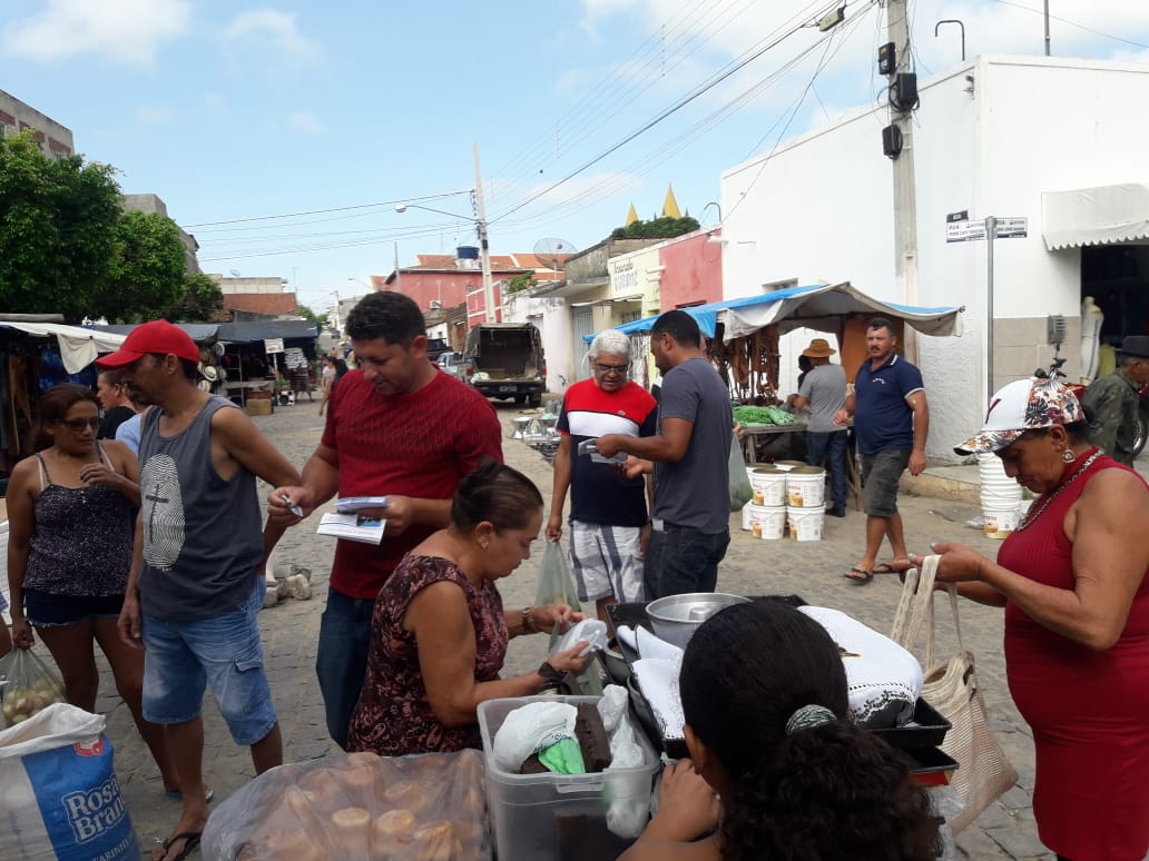 Equipe de lideranças do município de Cacimbas, Região Metropolitana de Patos, estiveram na feira livre da cidade de Desterro, Região Metropolitana de Patos, arrecadando doações para campanha a Campanha Abrace o Semiárido do Centro de Educação Popular e Formação Social – CEPFS.
