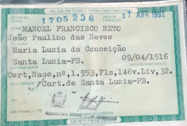 No dia 09 de abril deste anos o agricultor aposentado Manoel Francisco Neto, conhecido como Manoel Terto, residente na cidade de São Mamede, Região Metropolitana de Patos, fará 104 anos de idade.