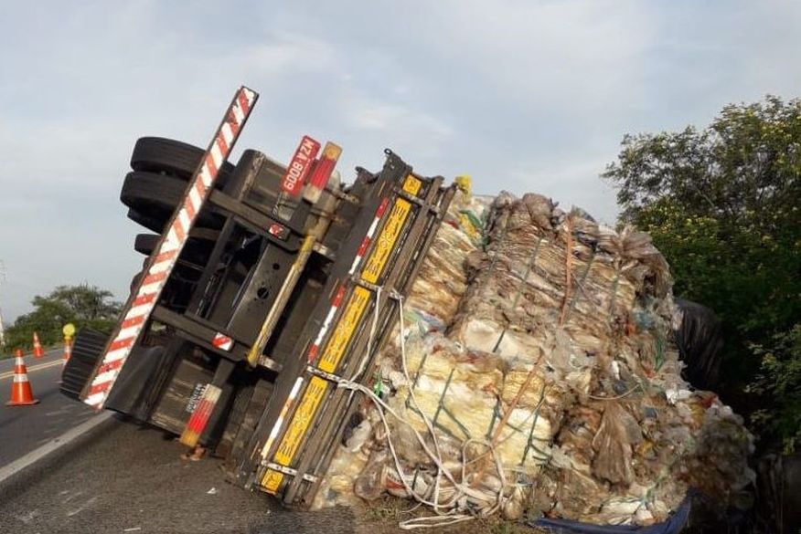 Um caminhão que transportava uma carga de plástico tombou na noite desta quinta-feira (30), no trecho da BR-230 próximo ao município de Soledade, na Paraíba.De acordo com a Polícia Rodoviária Federal (PRF), o acidente ocorreu por volta das 23h.