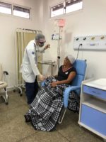A paciente Marlene da Silva Melquiades, 56 anos, da cidade de Patos, esteve hoje no Hospital do Bem para dar continuidade a sua quimioterapia e disse que a identificação mais cedo faz toda a diferença. “Tive que fazer uma mastectomia, por causa de um câncer de mama que talvez não tivesse sido tão invasivo se eu descobrisse a doença mais cedo, mas, o importante é encarar o tratamento e não perder a fé que tudo dará certo”, disse ela, elogiando a equipe do Hospital do Bem. “O atendimento aqui é ótimo, todos no tratam muito bem, da auxiliar de serviços até o médico, todos aqui os acolhem com muito carinho”, afirmou ela, enquanto tomava sua medicação intravenosa na sala de quimioterapia da unidade.