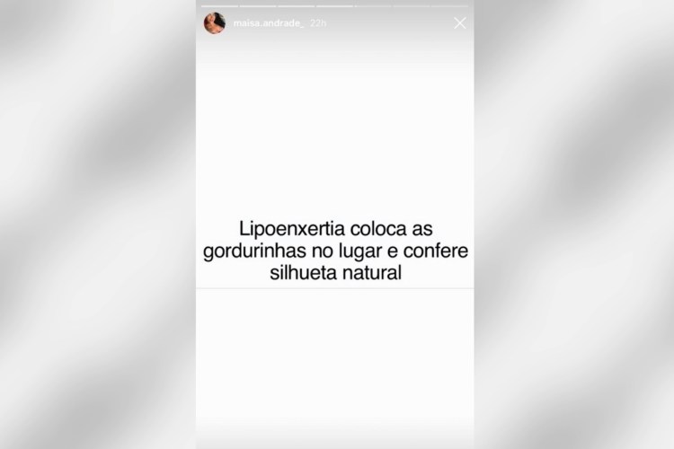 “Hoje vou fazer meu procedimento de estética, não sei se vou fazer stories lá porque estou muito ansiosa, nervosa, mas entrego tudo na mão de Deus, que tudo ocorra bem. Mais tarde se eu estiver bem vou tirar algumas fotos”, disse.